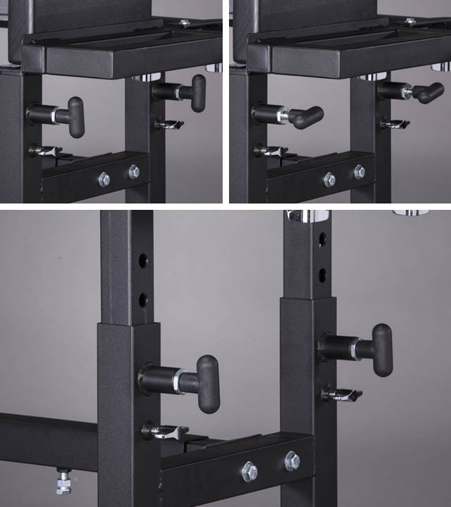Field Cart Height AdjustmentThe Field Carts adjust easily for height in order to accommodate a wide range of players. With the handles in the horizontal position, the height adjustment is unlocked and able to be moved. The handles in the vertical position mean that the height adjustment is securely locked in place. |